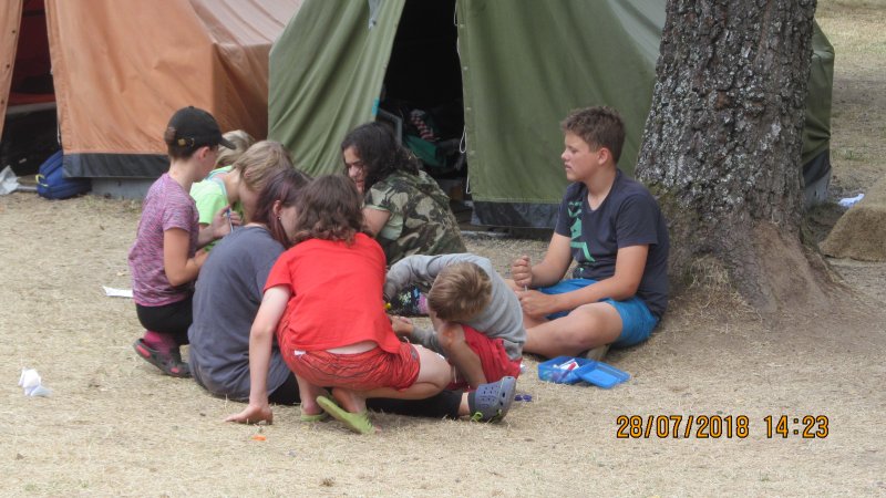 | 3. oddíl | Hra Klondajk, batikování | Koupání, dražba | Posed, závěrečný táborák |